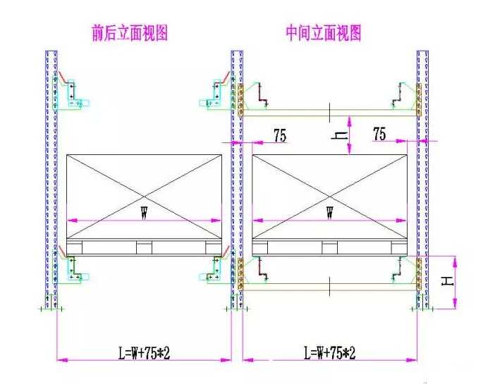 h為貨物頂端到上橫梁底部的預(yù)留高度約100 mm左右。