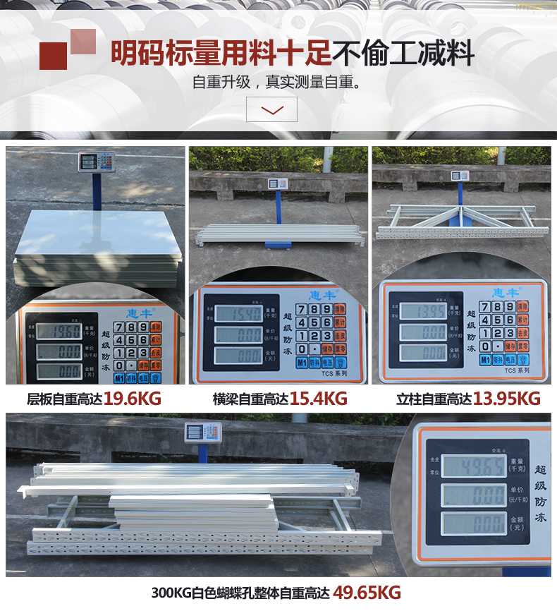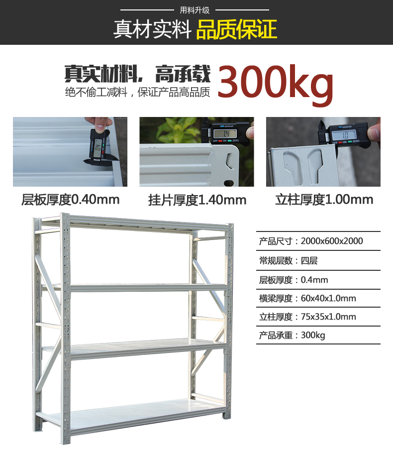 ![]() < > | 300KG 蝴蝶孔中型貨架型號(hào):300KG 蝴蝶孔中型貨架 灰 規(guī)格:長(zhǎng)200cmx寬60cmx高200cm 貨架層數(shù):4層(可增加層數(shù)) 貨架承重:300KG/層 立柱厚度:75*35*0.9mm C型鋼 橫梁規(guī)格:60*40*0.9mm P型鋼 層板厚度:0.40mm冷軋鋼板 訂購(gòu)熱線:189-2509-6199 |