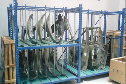 引擎蓋架、車門架是同種類型的貨架,與汽車擋風(fēng)玻璃架類似,也豎直放置的。這是因為引擎蓋、車門都是較重物品,一但堆疊放置,在存取時,需要自上而下,非常影響存儲效率。與擋風(fēng)玻璃架相比,引擎蓋架、車門架對貨架的承載力要求更大,鋼板厚度也更高。