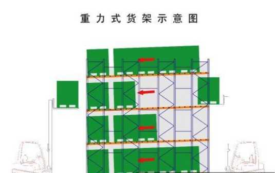 重力式貨架屬于倉儲(chǔ)貨架中的托盤類存儲(chǔ)貨架。重力式貨架采用的是先進(jìn)先出的存儲(chǔ)方式,貨架深度及層數(shù)可按需而定。 重力式貨架適用于少品種大批量同類貨物的存儲(chǔ), 空間利用率極高。