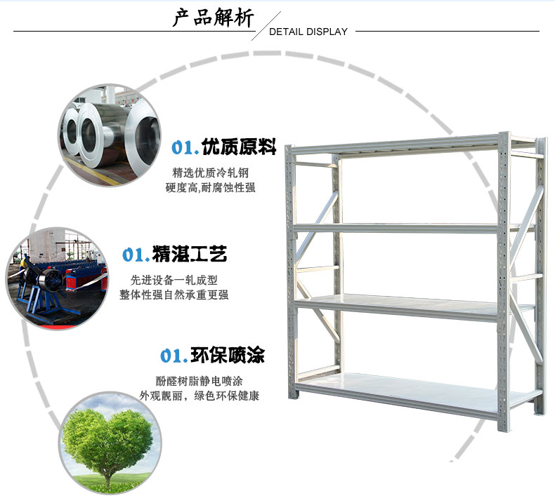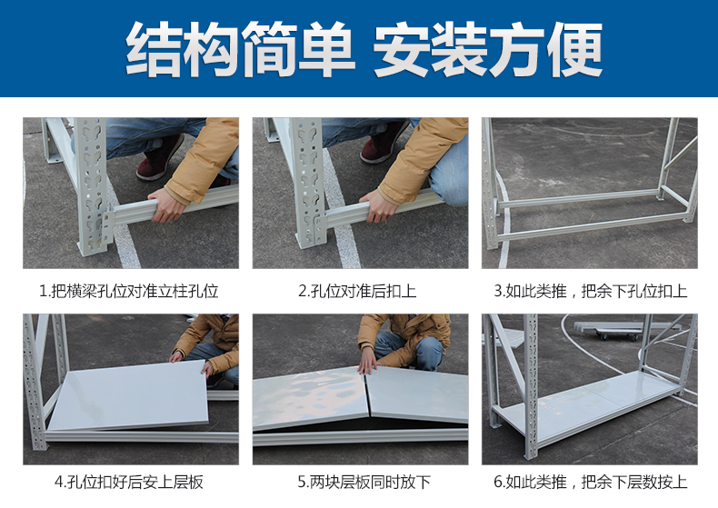 中型貨架標(biāo)準(zhǔn)型外形美觀,適用面廣、安裝拆卸方便、75mm節(jié)距調(diào)節(jié)、承載在100 KG~350 KG; 非標(biāo)型大跨度大承載,75mm節(jié)距調(diào)節(jié)外觀新穎,承載在300 KG ~ 1000 KG。中型貨架堅(jiān)固結(jié)實(shí),承載力大,中型貨架廣泛應(yīng)用于商場(chǎng)、超市、企業(yè)倉庫及事業(yè)單位。通常分為中量A型貨架、中量B型貨架和中量C型貨架。一般都可以拆裝組合,層板高度可以調(diào)節(jié);承重量層承重200-800公斤;貨架所有金屬件全部經(jīng)過防銹處理,外表經(jīng)靜電噴涂;中型貨架適用于大中小型倉庫存放貨物。在實(shí)際應(yīng)用中分中A型貨架和中B型貨架。