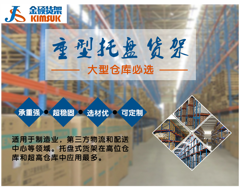 重型貨架廣泛應(yīng)用于制造業(yè)、第三方物流和配送中心等領(lǐng)域,既適用于多品種小批量物品,又適用于少品種大批量物品。重型貨架在高位倉(cāng)庫(kù)和超高位倉(cāng)庫(kù)中應(yīng)用(自動(dòng)化立體倉(cāng)庫(kù)中貨架大多用重型貨架)。
