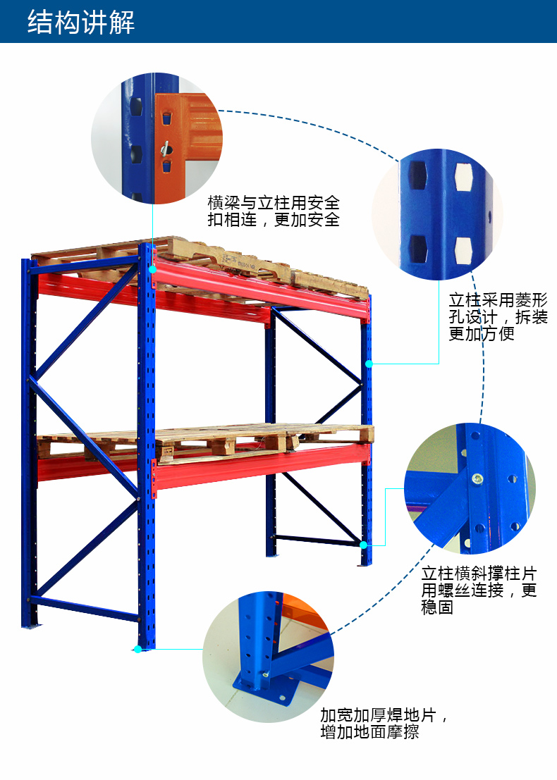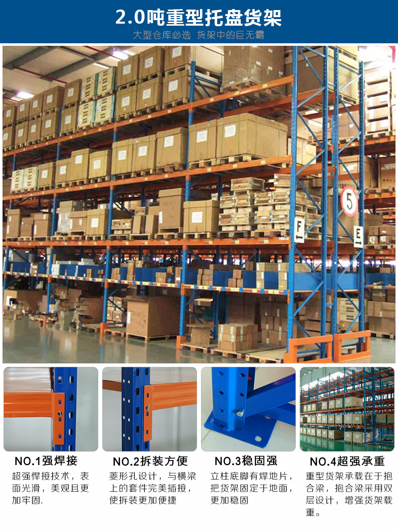 ![]() < > | 重型托盤貨架型號(hào):重型貨架02 規(guī)格:長(zhǎng)200cmx寬60cmx高200cm 貨架層數(shù):4層(可增加層數(shù)) 貨架承重:500KG/層 立柱厚度:75*35*1.1mm C型鋼 橫梁規(guī)格:80*40*1.1mm P型鋼 層板厚度:0.60mm冷軋鋼板 訂購(gòu)熱線:189-2509-6199 |