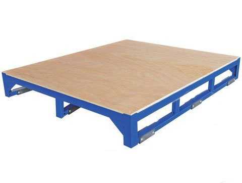 鋼制托盤是一種用于機(jī)械化裝卸、搬運和堆存貨物的集裝箱單元工具,基本結(jié)構(gòu)由單層鋪板下設(shè)縱梁或墊塊、支腿等所組成,托盤的高度以能方便使用叉車或托盤搬運車為原則。
