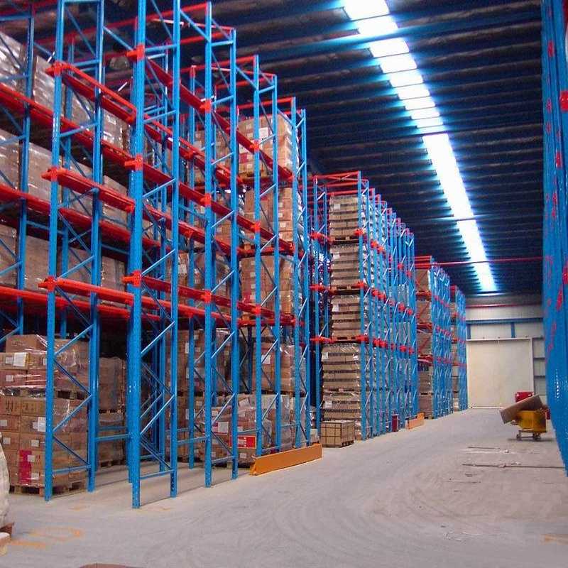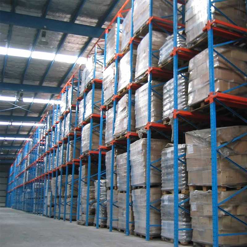 通廊式貨架又稱為駛?cè)胧截浖芑蜇炌ㄊ截浖?。是一種不以通道分割的、連續(xù)性的整棟式貨架,在支撐導(dǎo)軌上,托盤按深度方向存放,一個(gè)緊接著一個(gè),這使得高密度存儲(chǔ)成為可能。