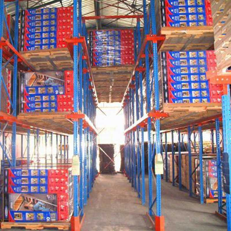 通廊式貨架又稱為駛?cè)胧截浖芑蜇炌ㄊ截浖堋J且环N不以通道分割的、連續(xù)性的整棟式貨架,在支撐導(dǎo)軌上,托盤按深度方向存放,一個(gè)緊接著一個(gè),這使得高密度存儲(chǔ)成為可能。