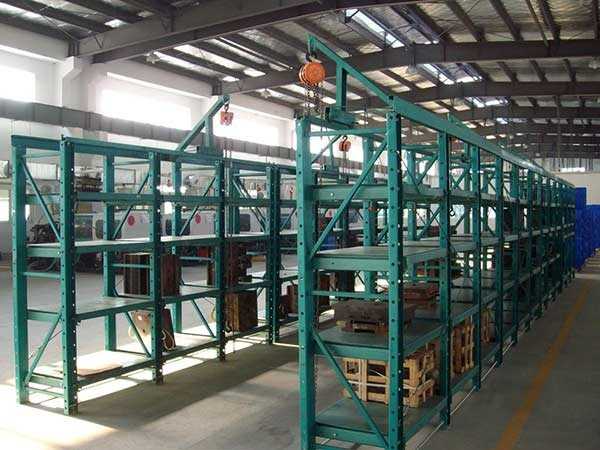 模具貨架又稱 模具架或 抽屜式貨架,主要存放各種模具物品,根據(jù)層載能力要求分為輕型模具貨架和重型模具貨架。貨架頂部可配置移動葫蘆車,以方便模具的起吊。