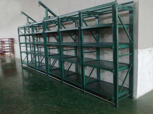 模具貨架又稱 模具架或 抽屜式貨架,主要存放各種模具物品,根據(jù)層載能力要求分為輕型模具貨架和重型模具貨架。貨架頂部可配置移動(dòng)葫蘆車,以方便模具的起吊。