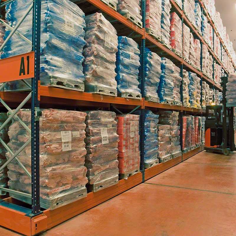 托盤(pán)貨架以儲(chǔ)存單元化托盤(pán)貨物,配以巷道式堆垛機(jī)及其他儲(chǔ)運(yùn)機(jī)械進(jìn)行作業(yè)。