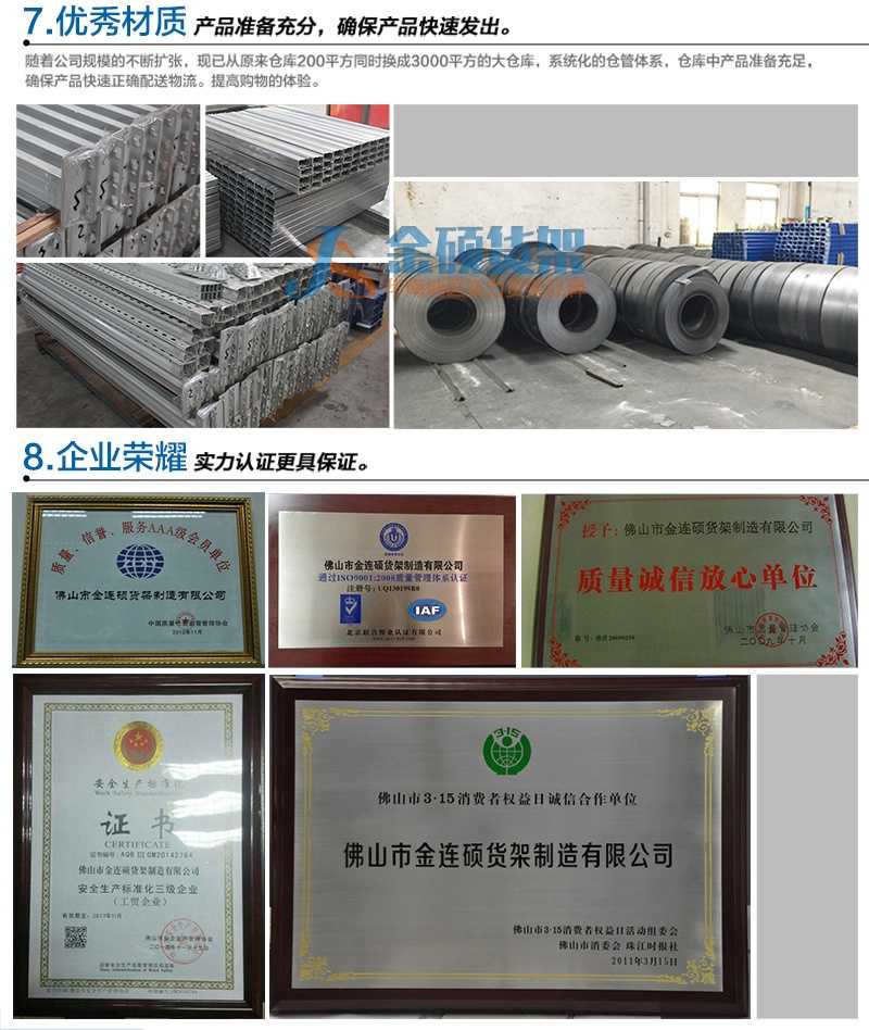 廣州金連碩貨架有限公司這個(gè)有名的廣州貨架廠始終以“以科學(xué)的物流規(guī)劃,卓越的服務(wù)品質(zhì),打造出高效率、低成本、高空間利用率的物流貨架儲(chǔ)存系統(tǒng),為社會(huì)創(chuàng)造更多的空間價(jià)值!”為使命,為廣州貨架行業(yè)打造一批批空間利用率高的貨架。在珠三角地區(qū)為眾多五百?gòu)?qiáng)企業(yè)倉(cāng)庫(kù)提供倉(cāng)庫(kù)貨架設(shè)計(jì)、倉(cāng)儲(chǔ)貨架制造等,廣州金連碩貨架有限公司的愿景是:打造貨架行業(yè)先鋒,締造出全球最卓越的倉(cāng)儲(chǔ)物流設(shè)備供應(yīng)商!