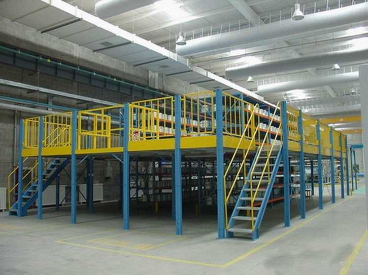 5、下層是貨架形式,上層可以是平臺(tái)也可以是貨架的結(jié)構(gòu)。底層貨架既可以存儲(chǔ)物料又是樓面的支撐,極具靈活性。