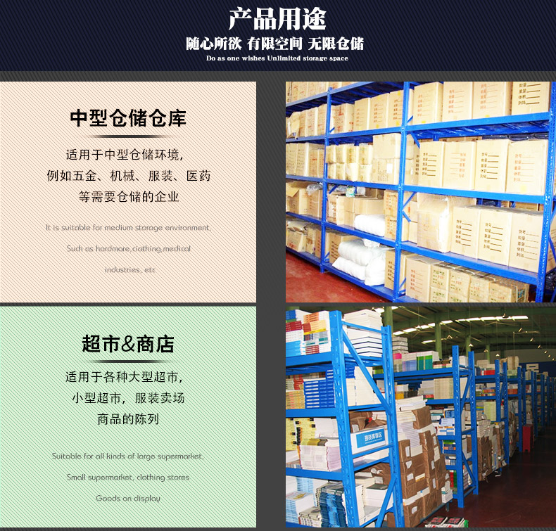 中型貨架可根據(jù)客戶需求尺寸訂做。