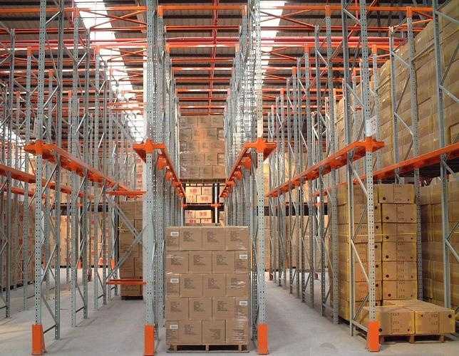 通廊式貨架又稱(chēng)通廊式貨架或駛?cè)胧截浖?。通廊式貨架采用托盤(pán)存取模式,適用于品種少,批量大類(lèi)型的貨物儲(chǔ)存。通廊式貨架除了靠近通道的貨位,由于叉車(chē)需要進(jìn)入貨架內(nèi)部存取貨物,通常單面取貨建議不超過(guò)7個(gè)貨位深度。為提高叉車(chē)運(yùn)行速度,可根據(jù)實(shí)際需要選擇配置導(dǎo)向軌道,與貨位式貨架相比,貫通式貨架(駛?cè)胧截浖埽┑膸?kù)空間利用率可提高30%以上,通廊式貨架(駛?cè)胧截浖埽V泛應(yīng)用于冷庫(kù)及食品、煙草行業(yè)。